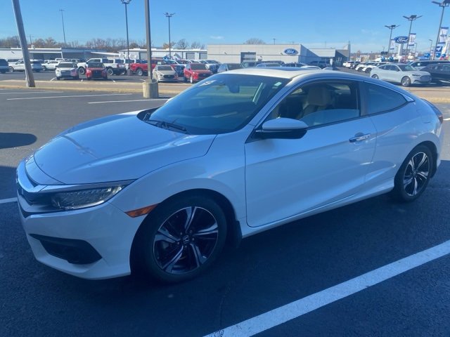 White 2017 Honda Civic Touring FWD CVT 1.5L I-4 DI DOHC Turbocharged Black/Gray Leather.
