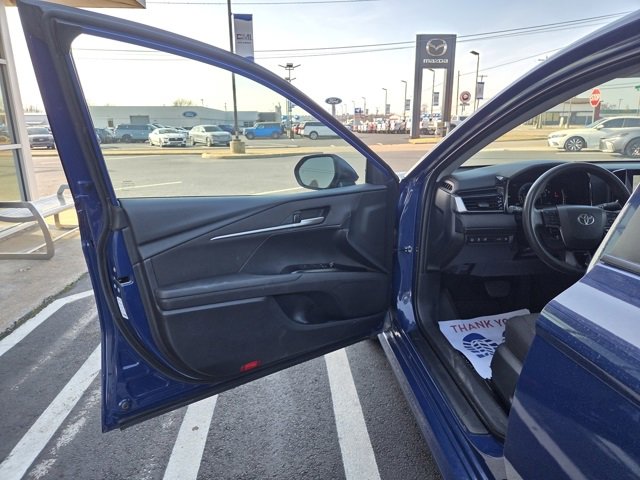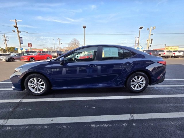 Certified. Blue 2025 Toyota Camry LE FWD eCVT 2.5L 4-Cylinder 16V DOHC 2.5L 4-Cylinder 16V DOHC, ABS brakes, Active Cruise Control, Alloy wheels, Electronic Stability Control, Front dual zone A/C, Heated door mirrors, Illuminated entry, Low tire pressure warning, Remote keyless entry, Traction control.